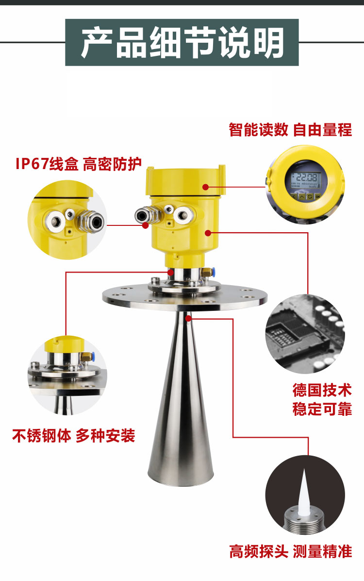 3、理論上測量達到天線*的位置是可能的,但是考慮到腐蝕及粘附的影響,測量范圍的終值應距離天線的*至少100mm。