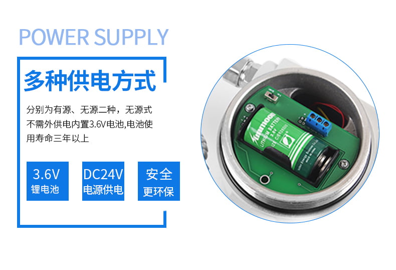 現場顯示型 儀表自帶3.6V鋰電池;