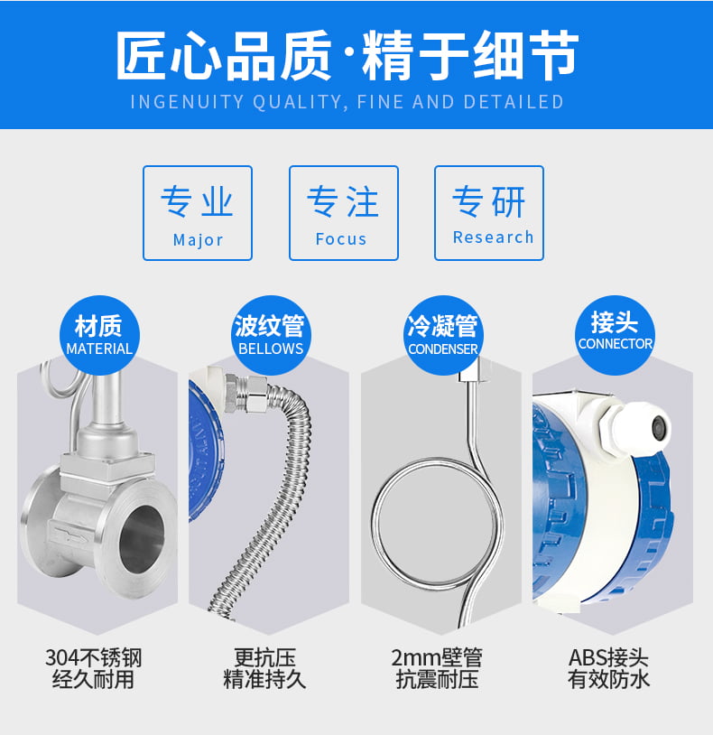19、儀表材質:儀表外殼采用鋁合金,表體部分采用不銹鋼304材質,也可根據用戶要求采用特殊材質。