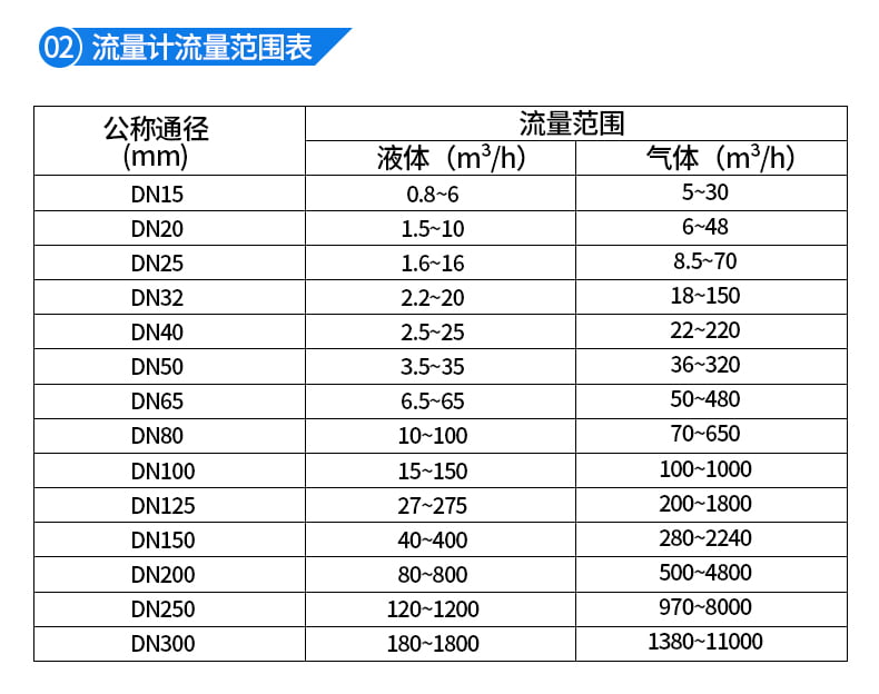 勿使實際zui小流量QVmin低于所選通徑流量計流量范圍下限。