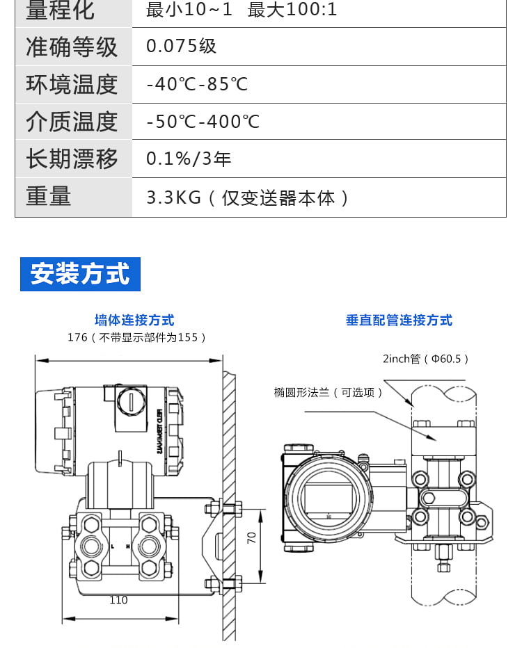 8、小型化(2.4kg)全不銹鋼法蘭,易于安裝;
