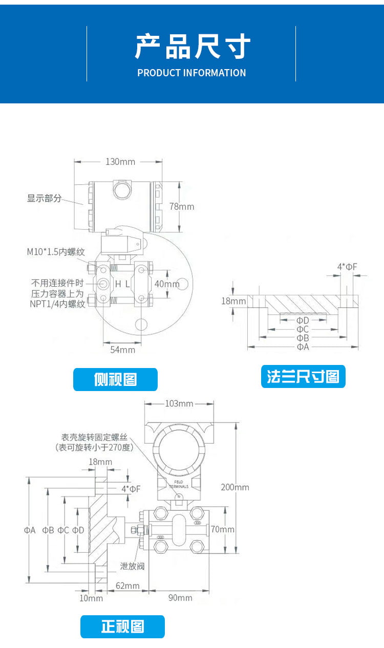 單法蘭液位變送器是引進國外**技術和設備生產的新型變送器,關鍵原材料,元器件和零部件均源自進口,整機經過嚴格組裝和測試,法蘭式液位變送器具有設計原理**、品種規格齊全、安裝使用簡便等特點。并被**使用的兩種變送器(羅斯蒙特3051與橫河EJA)的結構優點,讓使用者有耳目一新的感覺,同時與傳統的系列產品在安裝上可直接替換,有很強的通用性和替代能力。為適合國內自動化水平的不斷提高和發展,該系列產品除設計小巧精致外,更推出具有HART現場總線協議的智能化功能。