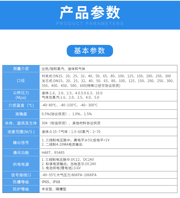 蒸汽流量請(qǐng)查看說(shuō)明書(shū),DN300以上推薦使用插入式渦街流量計(jì) |