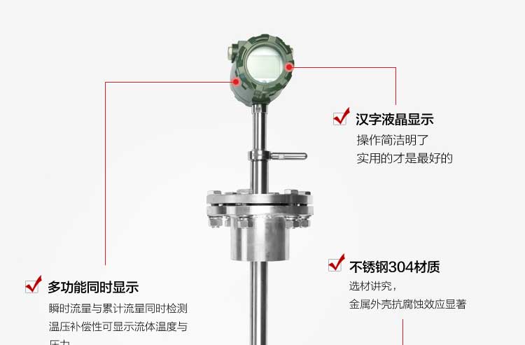 將渦街測(cè)量頭插入管道特定位置,通過測(cè)量該位置的局部流量,根據(jù)管道截面流速分布關(guān)系,計(jì)算出管道內(nèi)平均流速值。它由轉(zhuǎn)換器、插入桿組件、球閥( 根據(jù)需求配 )、安裝短管(ф100)、渦街測(cè)量頭等組成。