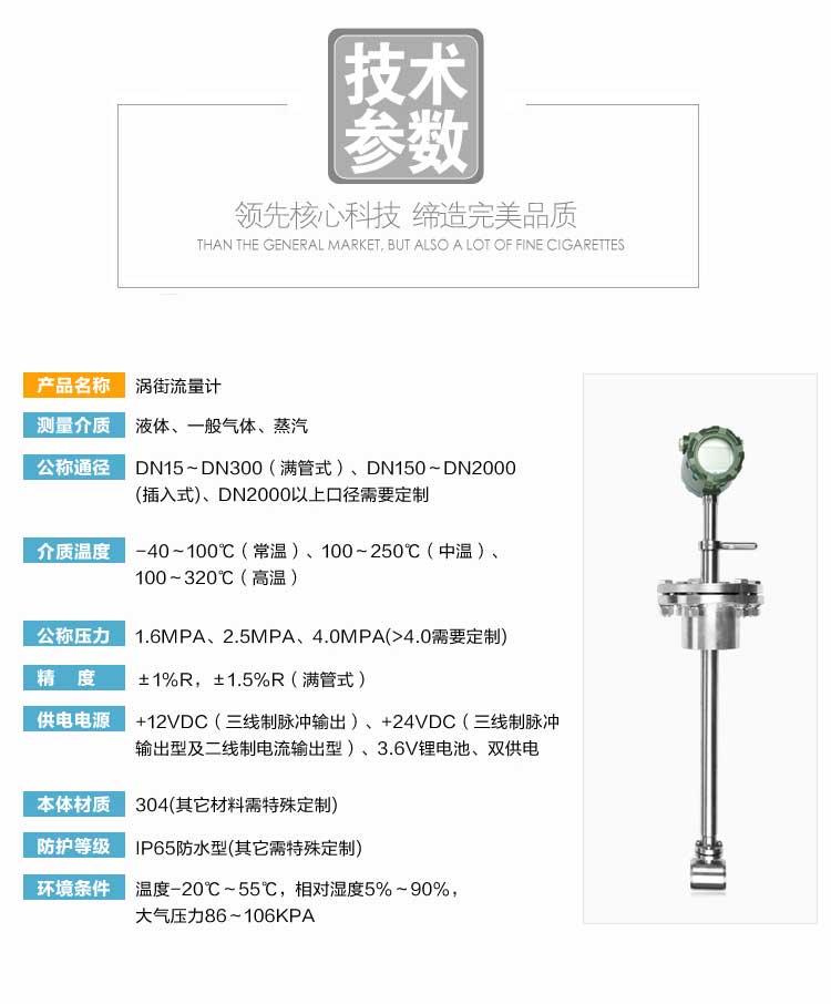 插入式渦街流量計(jì)的優(yōu)點(diǎn)是抗振性能特別好,無零點(diǎn)漂移,可靠性高。 通過長(zhǎng)時(shí)間對(duì)渦街流量計(jì)進(jìn)行的大量波形分析和頻譜分析,設(shè)計(jì)出理想的探頭形狀、壁厚,高度、探頭桿直徑及與之相配套的壓電晶體,采用**的數(shù)控車床進(jìn)行加工,確保加工的同軸度和光潔度等技術(shù)參數(shù),配合特殊的工藝處理,從而zui大限度的克服渦街流量計(jì)存在的固有自振蕩頻率對(duì)信號(hào)的影響這個(gè)通病。