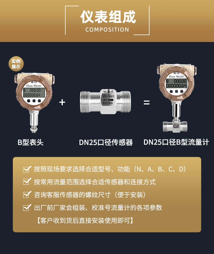 6、通過流量傳感器的流量過大時,會使軸承壽命過短,通常通過閥門將流量調到合適大小,其閥門應安裝在流量計的下游。