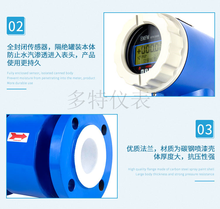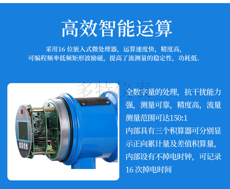 電磁流量計采用世界新技術。利用恒流低頻三值矩形波或雙頻矩形波勵磁,既有矩形波磁場的優點,又克服了正弦波磁場的缺點;還可以消除電源電壓波動、電源頻率變化及勵磁線圈阻抗變化所造成的誤差;并有極好的零點穩定性和不受流體噪聲干擾影響。