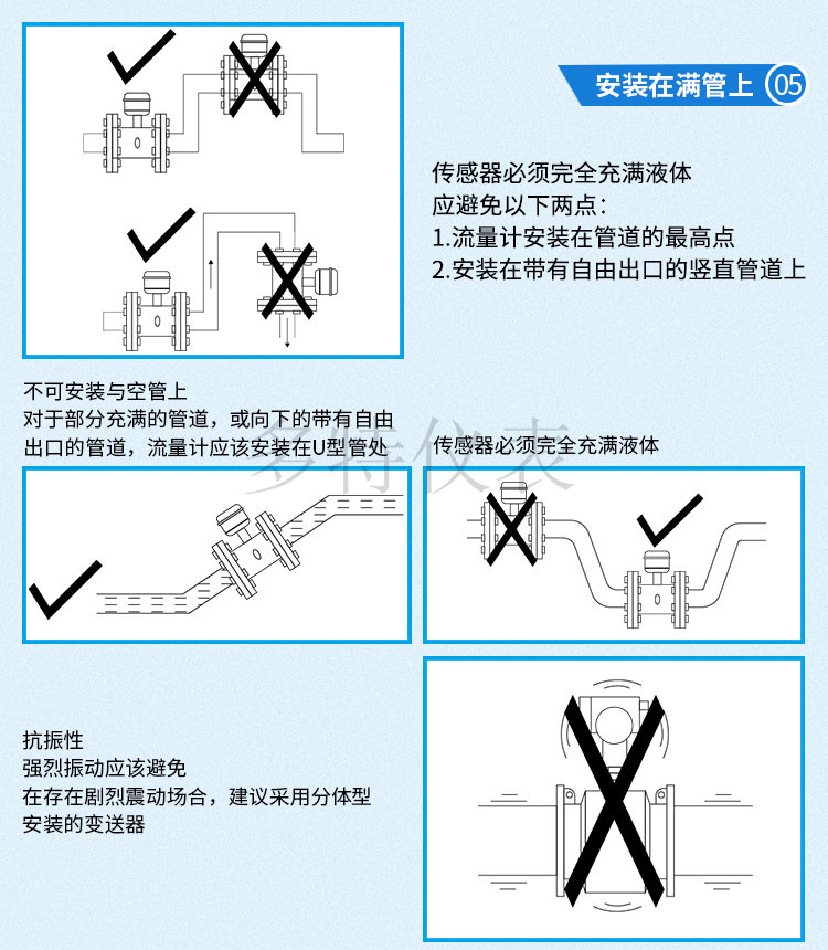 5、應在傳感器的下游安裝控制閥和切斷閥,而不應安裝在上游;