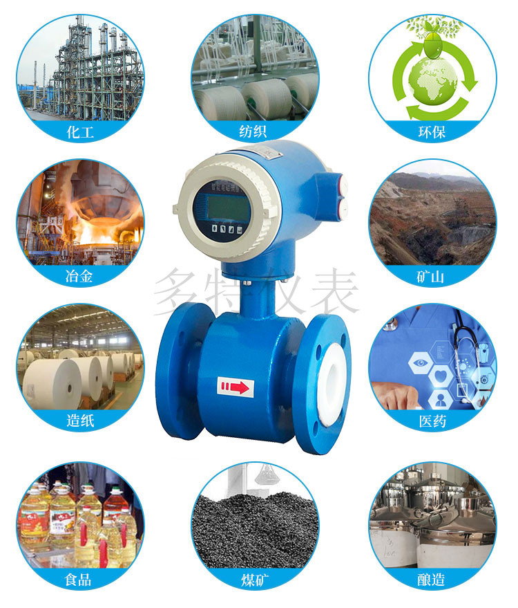 流量計主要用于測量封閉管道中的導電液體和漿液中的體積流量。如水、污水、泥漿、紙漿、各種酸、堿、鹽溶液、食品漿液等,**應用于石油、化工、冶金、紡織、食品、制藥、造紙等行業以及環保、市政管理,水利建設等領域。