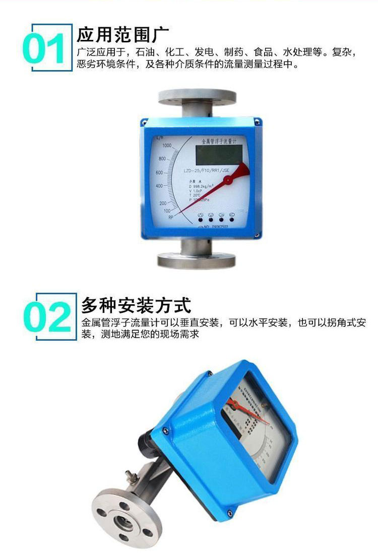 金屬管流量計是工業自動化過程控制中常用的一種變面積流量測量儀表。它具有體積小,檢測范圍大,使用方便等特點。它可用來測量液體、氣體以及蒸汽的流量,特別適宜低流速小流量的介質流量測量。**應用于,石油、化工、發電、制藥、食品、水處理等復雜,惡劣環境條件,及各種介質條件的流量測量過程中。