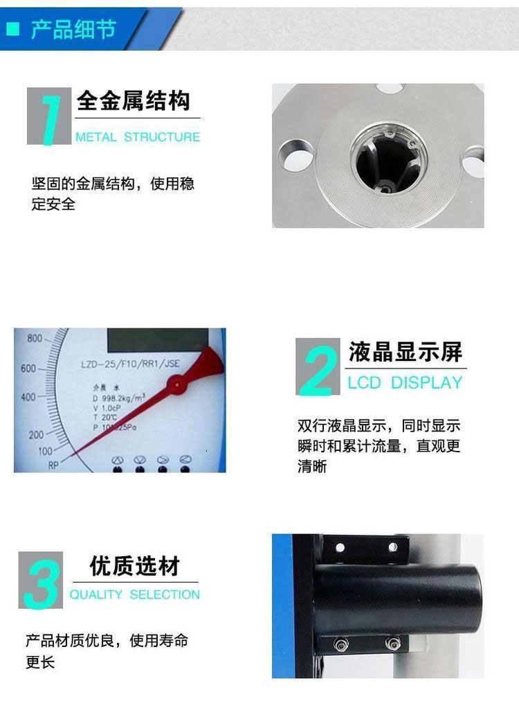3、機械指針現場指示瞬時流量,LCD液晶顯示瞬時流量、累積流量 ;
