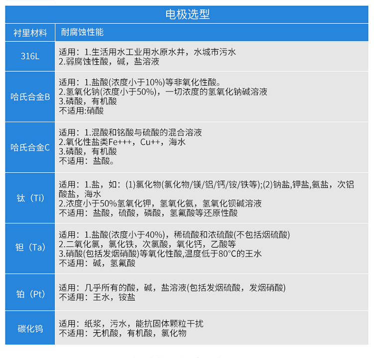c、為適應不同介質測量的要求,傳感器的襯里和電極材料可以有多種選擇。