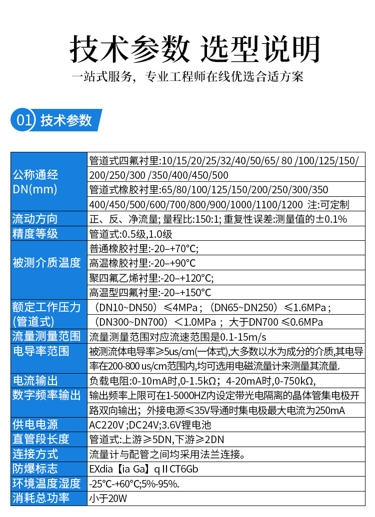5、采用聚四氟乙烯或橡膠材質襯里和Hc、Hb、316L、Ti等電極材料的不同組合可適應不同介質的需要。