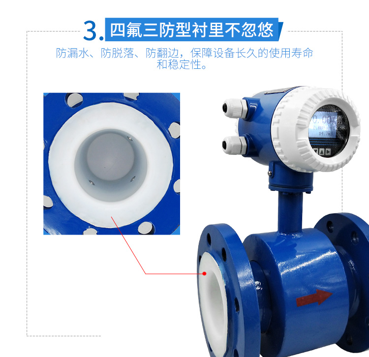 稀硫酸流量計測量精度不受流體密度、粘度、溫度、壓力和電導率變化的影響,傳感器感應電壓信號與平均流速呈線性關系,因此測量精度高。測量管道內無阻流件,因此沒有附加的壓力損失;測量管道內無可動部件,因此傳感器壽命極長。由于感應電壓信號是在整個充滿磁場的空間中形成的,是管道載面上的平均值,因此傳感器所需的直管段較短,長度為5倍的管道直徑。流量計傳感器部分只有內襯和電極與被測液體接觸,只要合理選擇電極和內襯材料,即可耐腐蝕和耐磨損。